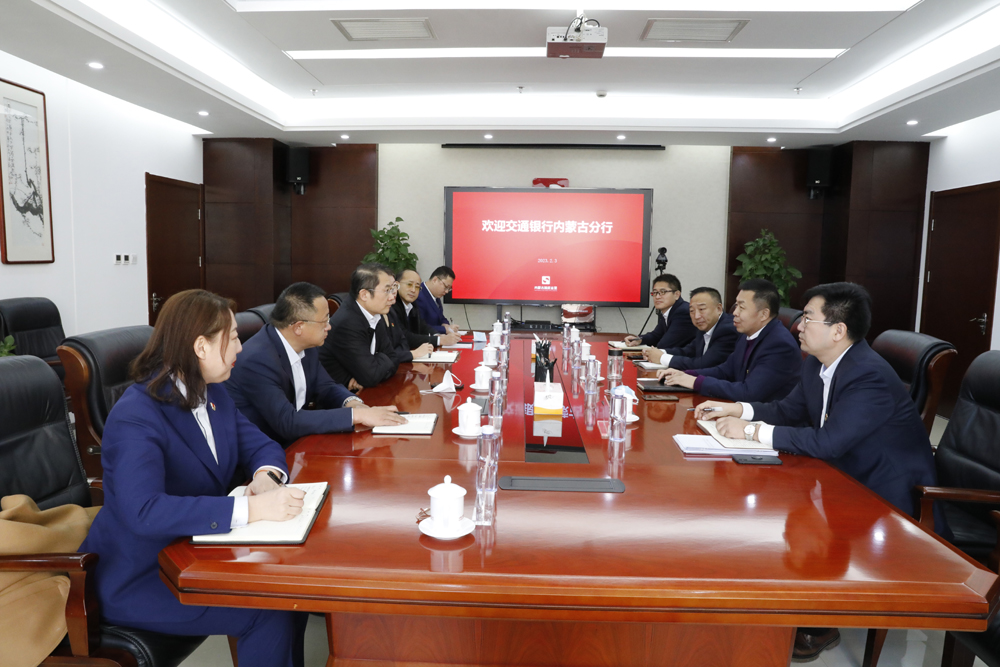 2月3日,国资朋友圈迎来老朋友交通银行内蒙古分行孟真行长一行,乐鱼(中国)官方网站党委书记、董事长马志春会见来访人员,银企双方就深化务实合作,加强业务创新进行座谈交流。